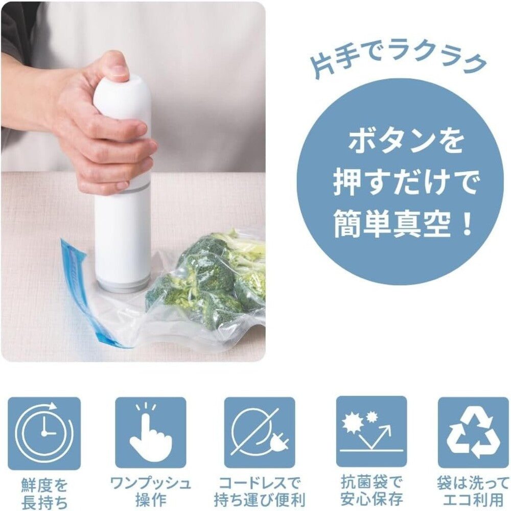 ●片手でラクラク。ボタンを押すだけで簡単真空!