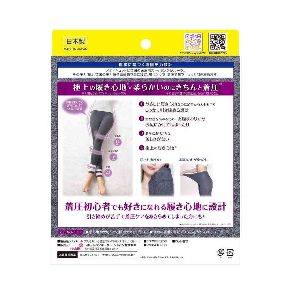 医学に基づく段階圧力設計で、メディキュットは英国の医療用ストッキングがルーツ。その圧力値は、英国の圧力値標準規格をもとに設定。履くだけで、脚をキュッと引き締めます。