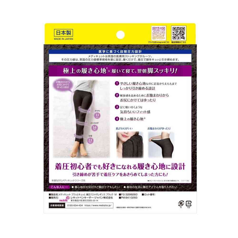 優しい履き心地で寝ながら集肌ざわりのよい素材で脚を包み込み、心地よい眠りへ導く。中ケア…約6倍の柔らかさなのに同じ着圧です。※6倍…寝ながらメディキュットスパッツとの生地の柔らかさ(脚着圧部分)、着圧値(足首・ふくろはぎ・太もも)の比較です。