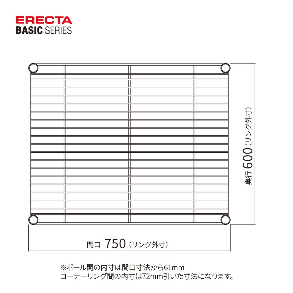 時代の変化にも揺るがないベーシックライン。高度な溶接技術により精度を高め、寸法安定性に優れます。 汎用性の高いパーツを用意し、万能型シェルフとして様々な用途に対応。棚1段あたり135kgの耐荷重。線材の切断面に面取り加工を施し、安全性に配慮。 間口1500mm、奥行450mm、600mmのワイヤーシェルフには補強用スネークが入ります。サビに強い仕上げ。※クロームにはクリアコーティング仕上げを、ブラック・ホワイトにはエポキシコーティング仕上げ(粉体塗装)を施しているため、サビに強く衛生的です。【仕様】耐荷重:135kg/棚1段 垂直荷重(等分布)●付属品: テーパードスリーブブラック(B9985)1棚4組入り●互換性:同一サイズのユニット内で、下記の棚板との併用が可能です。●ベーシックシリーズ ウッドシェルフ●ベーシックシリーズ スライディングシェルフ/ 3 方クロスバー/アクリル板●ベーシックシリーズヴィンテージエディションスーパーシリーズ、ファーストシリーズ等、他のシリーズとの互換性はありません。