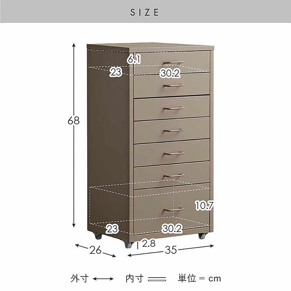 ミニマルで洗練されたデザインに、7杯の引き出しを備えた大容量の収納力。デスク横にすっきり収まるサイズ感で、日常の使いやすさとスタイリッシュな佇まいを両立しました。製品重量:8.2kg