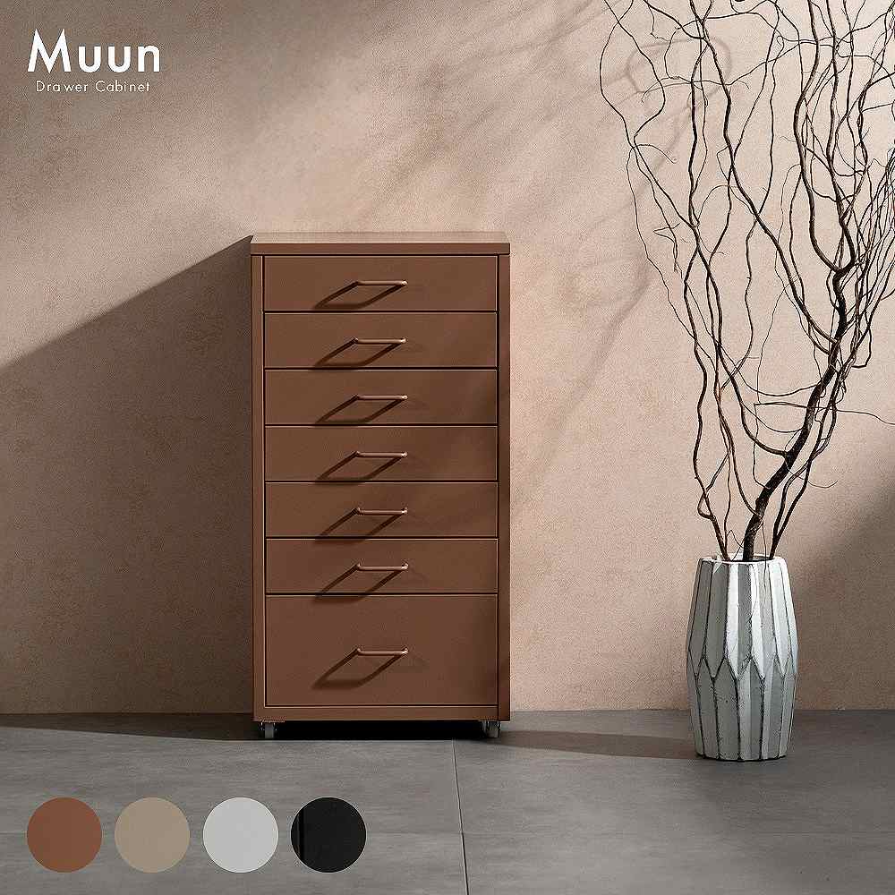 ミニマルで洗練されたデザインに、7杯の引き出しを備えた大容量の収納力。デスク横にすっきり収まるサイズ感で、日常の使いやすさとスタイリッシュな佇まいを両立しました。製品重量:8.2kg
