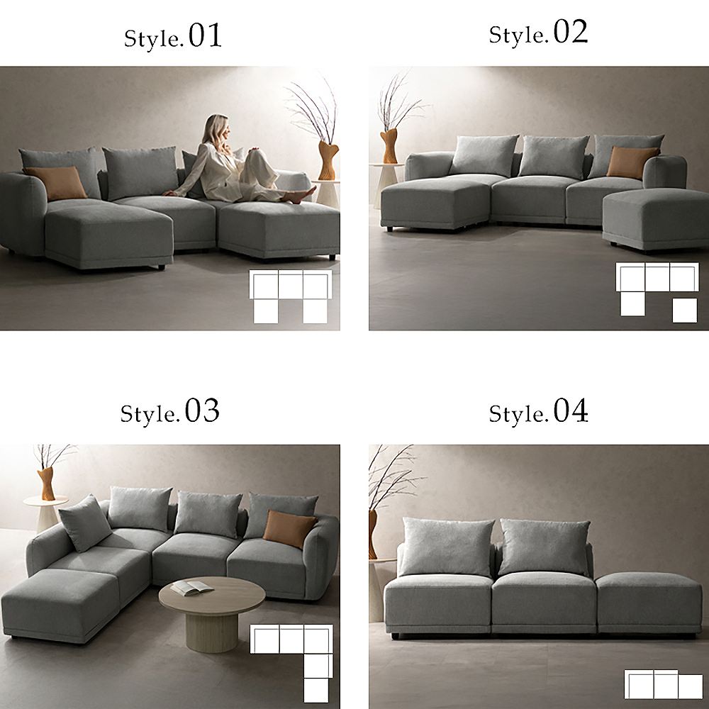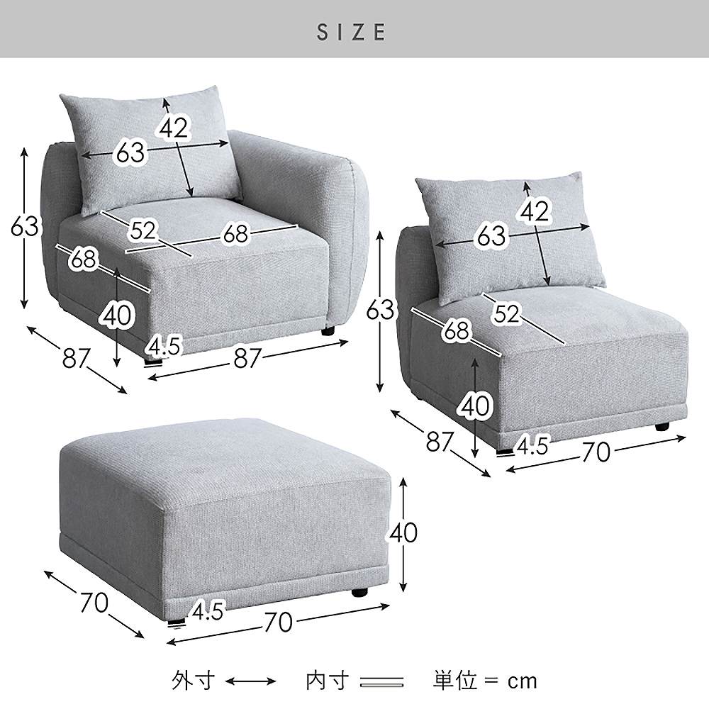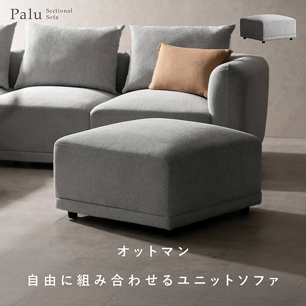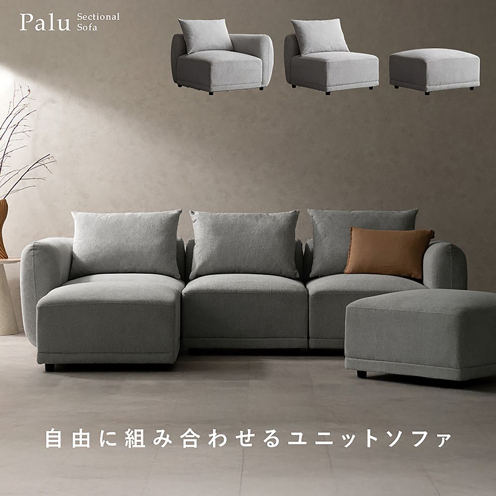 三種類のソファを組み合わせてお好みの形にできるユニットソファ『Palu(パル)』。肘掛けのあるコーナーソファ、中央に置けるアームレスソファ、オットマンから置く場所や座る人数に合わせて様々なパターンができます。座り心地の良い座面と落ち着くのあるグレーカラーの張地でリラックスタイムを快適にお過ごしいただけます。 製品重量:15kg