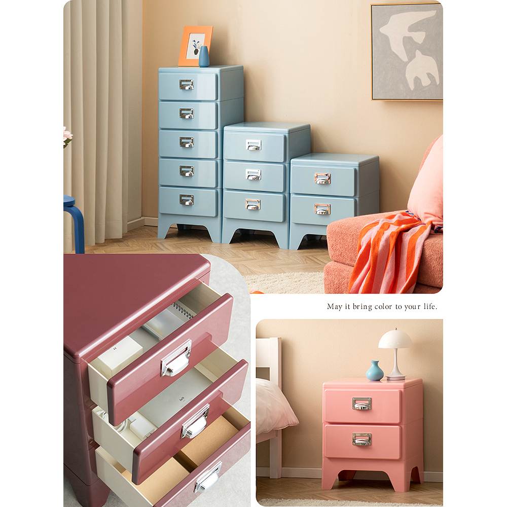 ツヤ感と丸みのあるデザインがレトロ可愛い多段チェスト『Cran(クラン)』。幅39.5cmのスリムサイズでどんな場所にも置けます。段数は2・3・5段の3タイプあり収納したい物に合わせてお選びいただけます。クリーム、ライトブルー、ライトグリーン、ピンク、オレンジ、ワイン、ネイビーの7カラー展開。お部屋のアクセントにもなります。製品重量:10.4kg