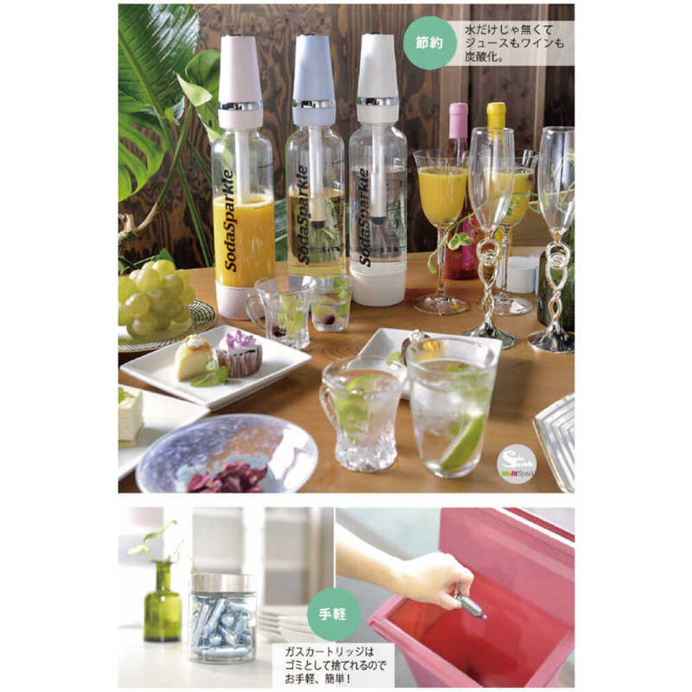 ●専用ガスカートリッジ1本で、水(1?)ジュースや白ワイン(650ml)炭酸水が作れます。