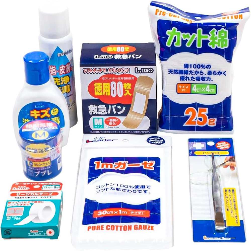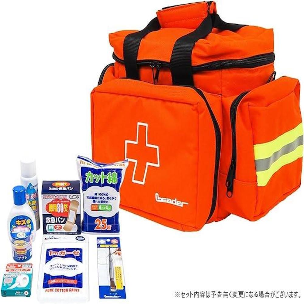 災害時や救急・防災用として便利。防災用品(衛生材料・常備薬・非常食など)の保管用に。スポーツチームなどのメディカルバックとして。オックスフォード生地に塩化ビニルコーティングを施しているので軽くて丈夫です。マジックテープ式の仕切り板がついており、中身を整理するのに便利。 防水・防塵機能の布を採用しています。衝撃から中身を守る保護パッドが入っています。小中規模の事業所・学校関係などの救急・防災用品としてもお使い頂けます。ハサミ、ピンセットなどの収納に便利なポケット・ベルト付き。すぐに使える衛生材料セット付き。、セット内容:救急バッグ、LEカット綿25g(4×4cm)、LEガーゼ1m(30cm×1m)、エルモサージカルテープ12.5mm×9m、ププレ伸縮包帯M(5.0cm×4.5m)、エルモキズ洗浄消毒液80ml、エルモ手指・皮膚の洗浄消毒スプレー83ml、エルモ救急バンMサイズ80枚入、LE衛生ピンセット12.5cm(各1個)