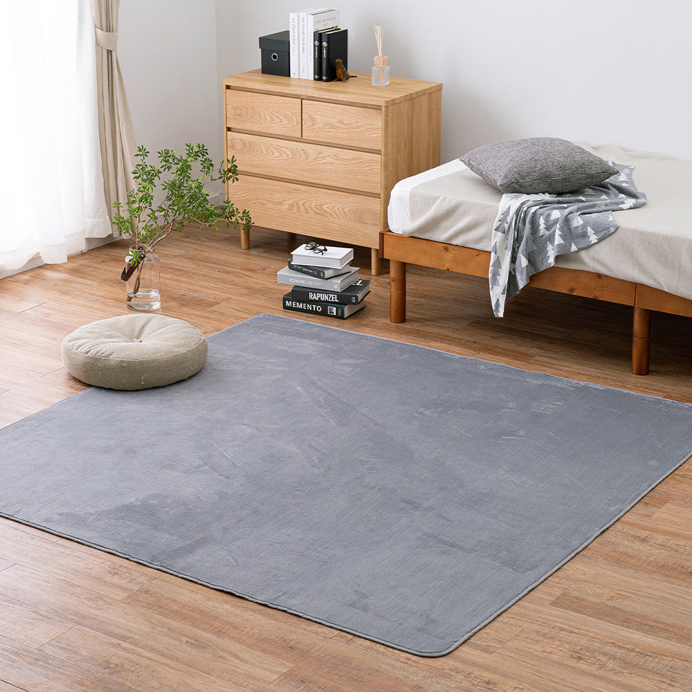 おもわず触れたなるような、メレンゲみたいなふんわりなめらかタッチラグ。薄手でやわらかく、折りたたんで収納もコンパクトに。軽量でお掃除や模様替えなどでの移動もらくらく!毛足が短めでゴミが入り込みにくくお手入れも簡単、汚れても洗濯できるからいつもきれいで衛生的に、安心してお使いいただけます。