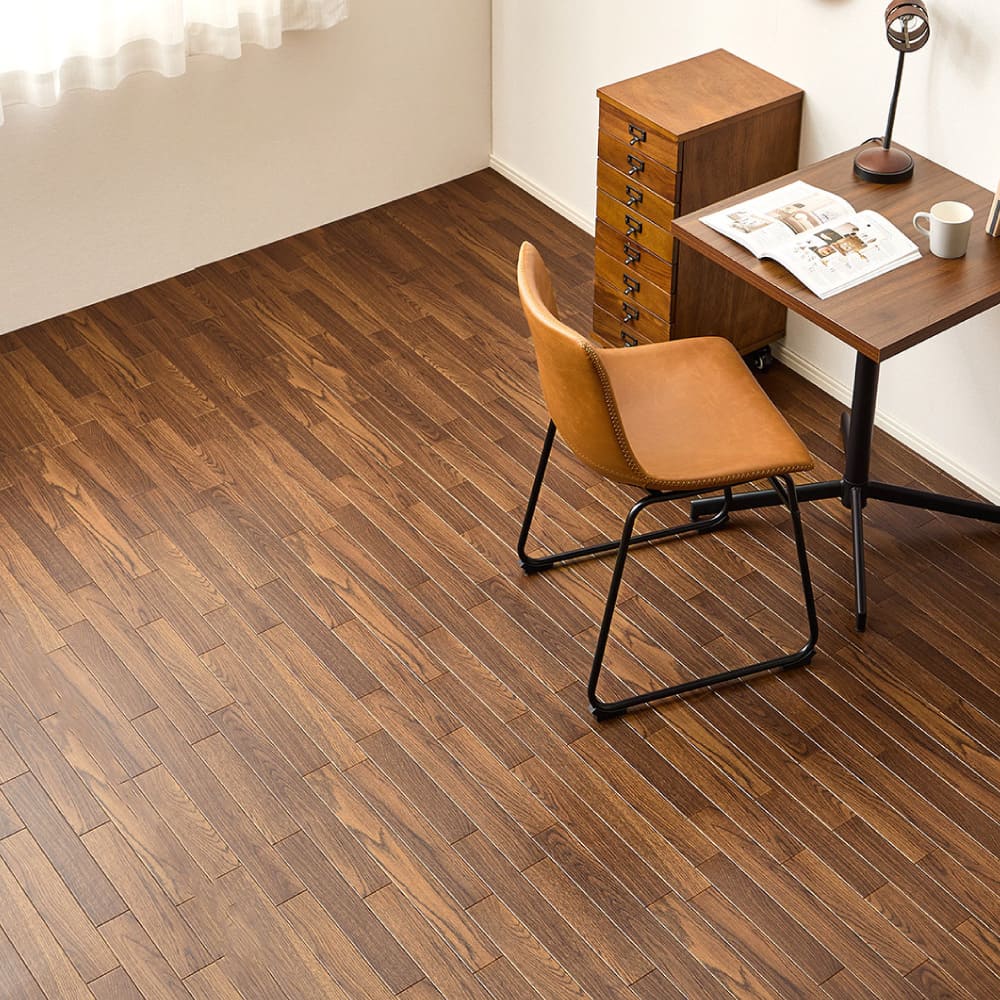 敷くだけで簡単に床の色を変えられるクッションフロア。お部屋の雰囲気がガラリと変えられるので気軽に模様替えができ、床への傷や汚れ防止にも!1枚の幅が約91cmずつにカットされているので扱いやすく、つなぎ合わせて敷き詰めるだけなので設置も簡単。やわらかい素材でカットしやすく、スペースにあわせてお使いいただけます。