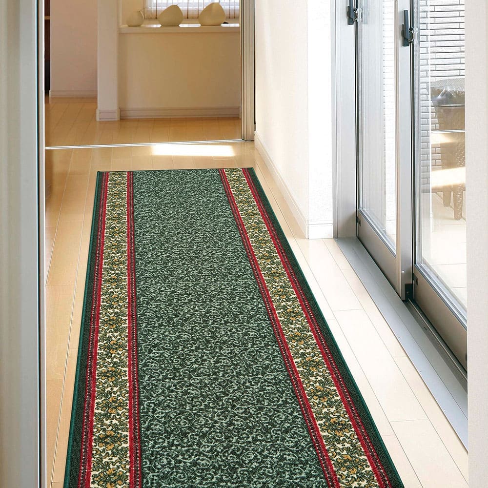 廊下の冷え防止や防音対策にもなる廊下敷きカーペット。へたりにくく長く使える丈夫なナイロン素材で、汚れが気になってきたら手洗いもOK。裏には滑り止め加工が施されているため、お子様やペットと暮らすご家庭でも安心です。廊下以外にも、キッチンやベットサイドのマットとしてもお使いいただけます。