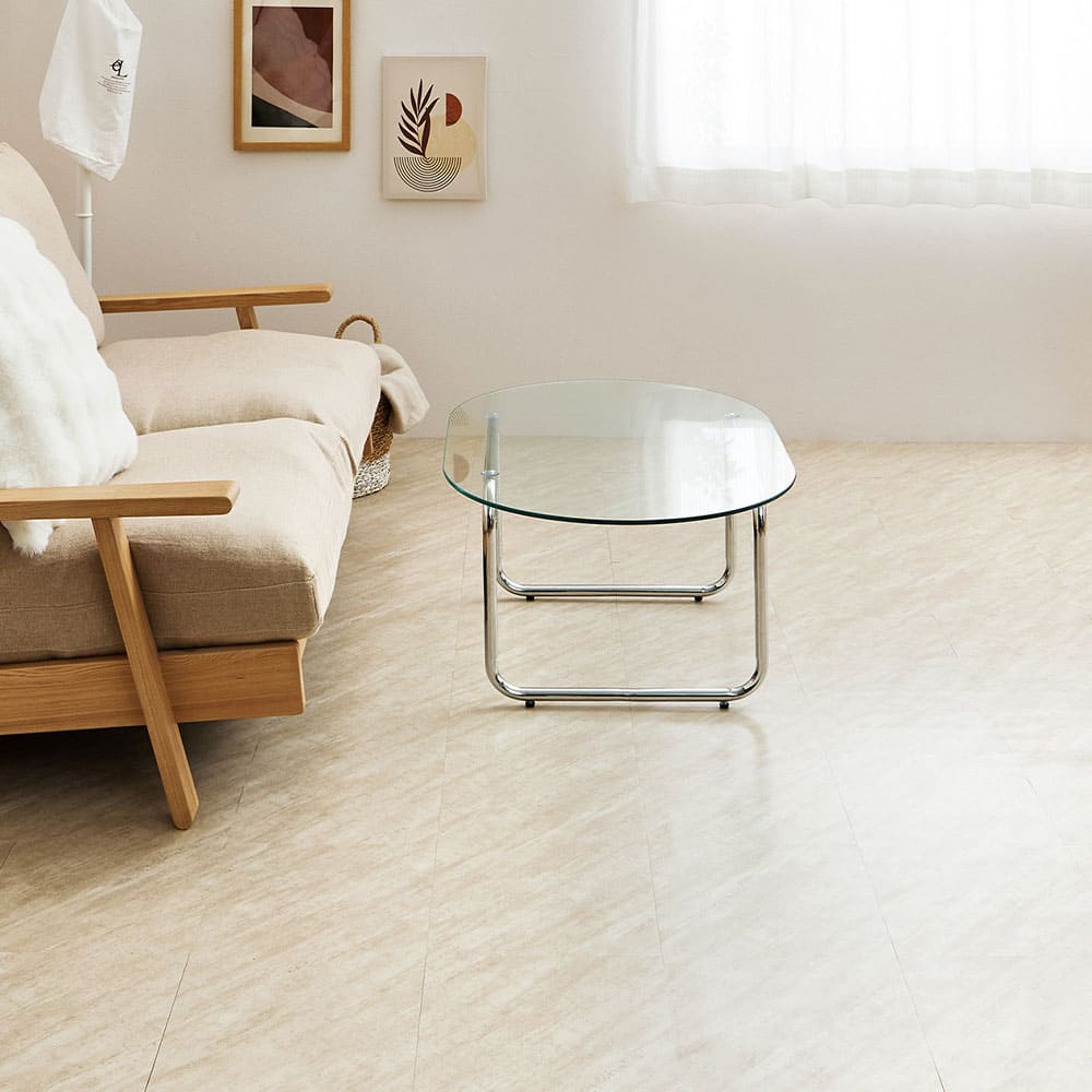 貼ってはがせて、何度も繰り返し使えるフロアタイル。フィルムをはがして、床の上から貼るだけでお部屋を簡単にイメージチェンジできます。超薄型&軽量なので施工も簡単!賃貸や新築の床への汚れや傷の防止にも。キッチンや洗面所など水周りにも使えて、粘着が落ちても水で洗えば繰り返しご使用いただけます。カッターで簡単にカットでき、お部屋に合わせて敷き詰められます。