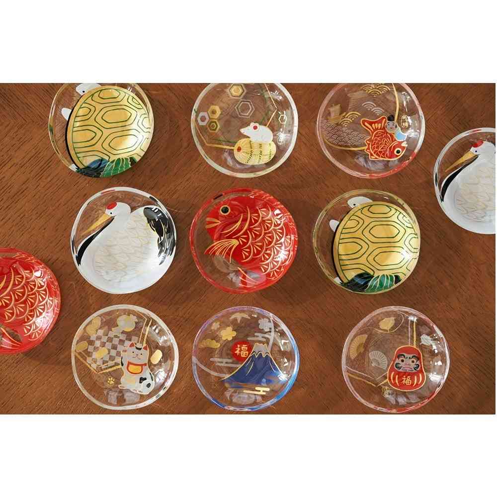 縁起の良い4柄それぞれ金色の1個箱入りで、贈り物にも最適です。