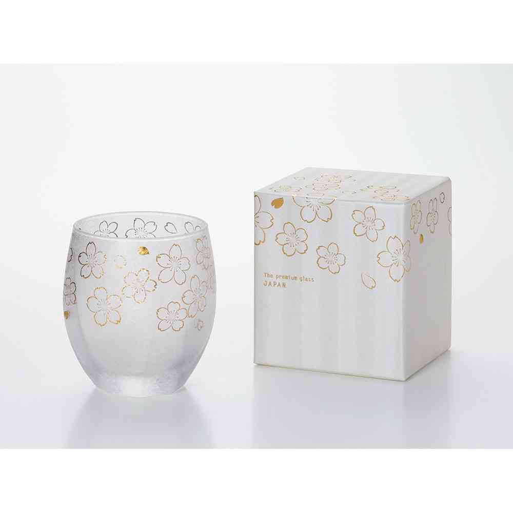 日本古来の文化や意匠を現代の技術でグラスに表現。日本を象徴する花「桜」をちりばめたグラスです。パッケージに高級感ある化粧箱を使っており、贈り物に最適です。
