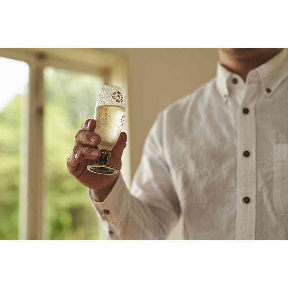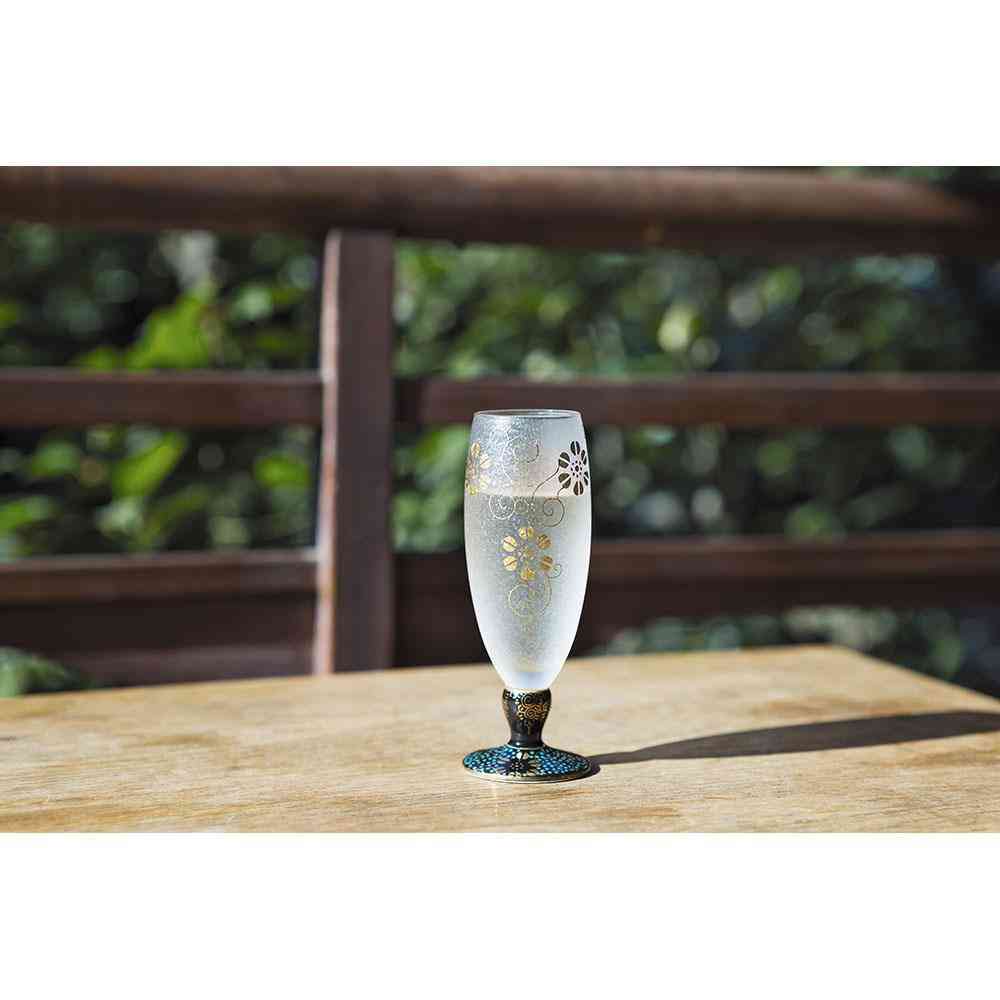 みぞれを連想させる特殊な加工を施した硝子に、石川県の伝統工芸である九谷焼を合わせました。