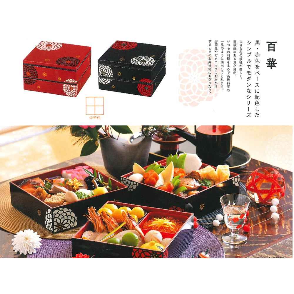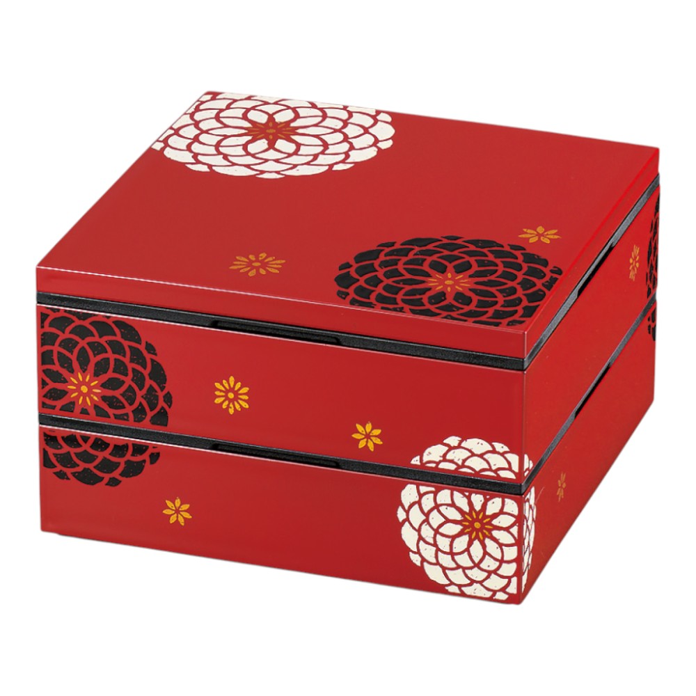大きな花の模様が美しく、高級感のある見た目が特徴。中子が4つ、中蓋もついてます