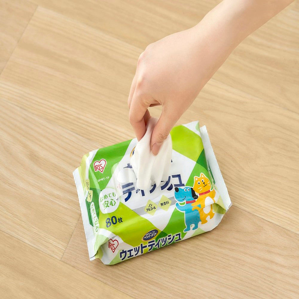 ノンアルコールのペット用ウェットティッシュです。散歩後の足やトイレ後のおしりなどしっかりふけます。トイレやケージ周りの掃除や、そそう汚れなどの拭き取りなどにお使いいただけます。なめても安全な成分を使用しているので、お口や目の周りも安心してお使いいただけます。1枚ずつ簡単に取り出せて、詰め替え容器不要のフィルムパックです。