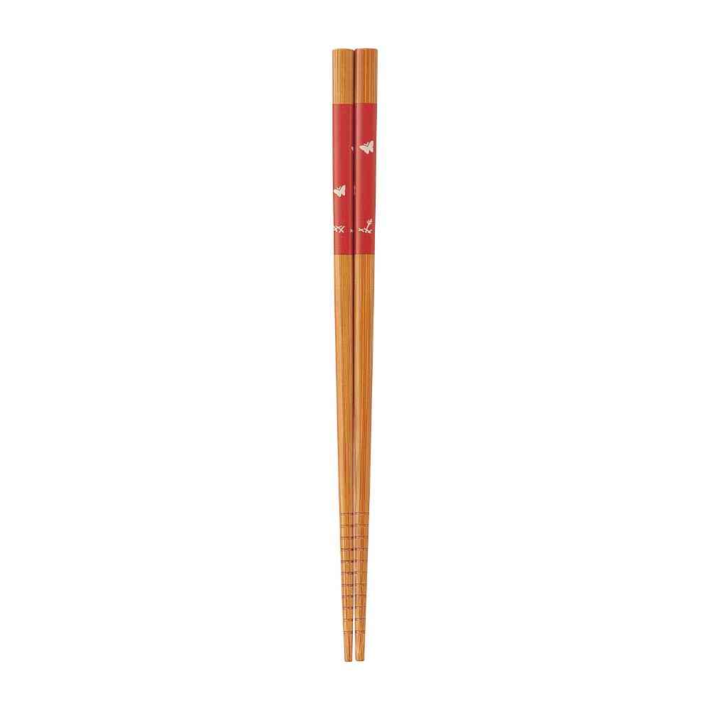 イシダ 箸 スス竹 蝶 レッド 19.5cm 1膳