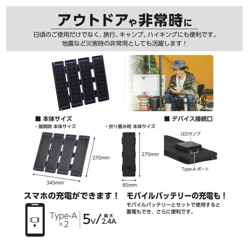 ● 出力端子:USB Type-Aポート×2(5V/最大2.4A)