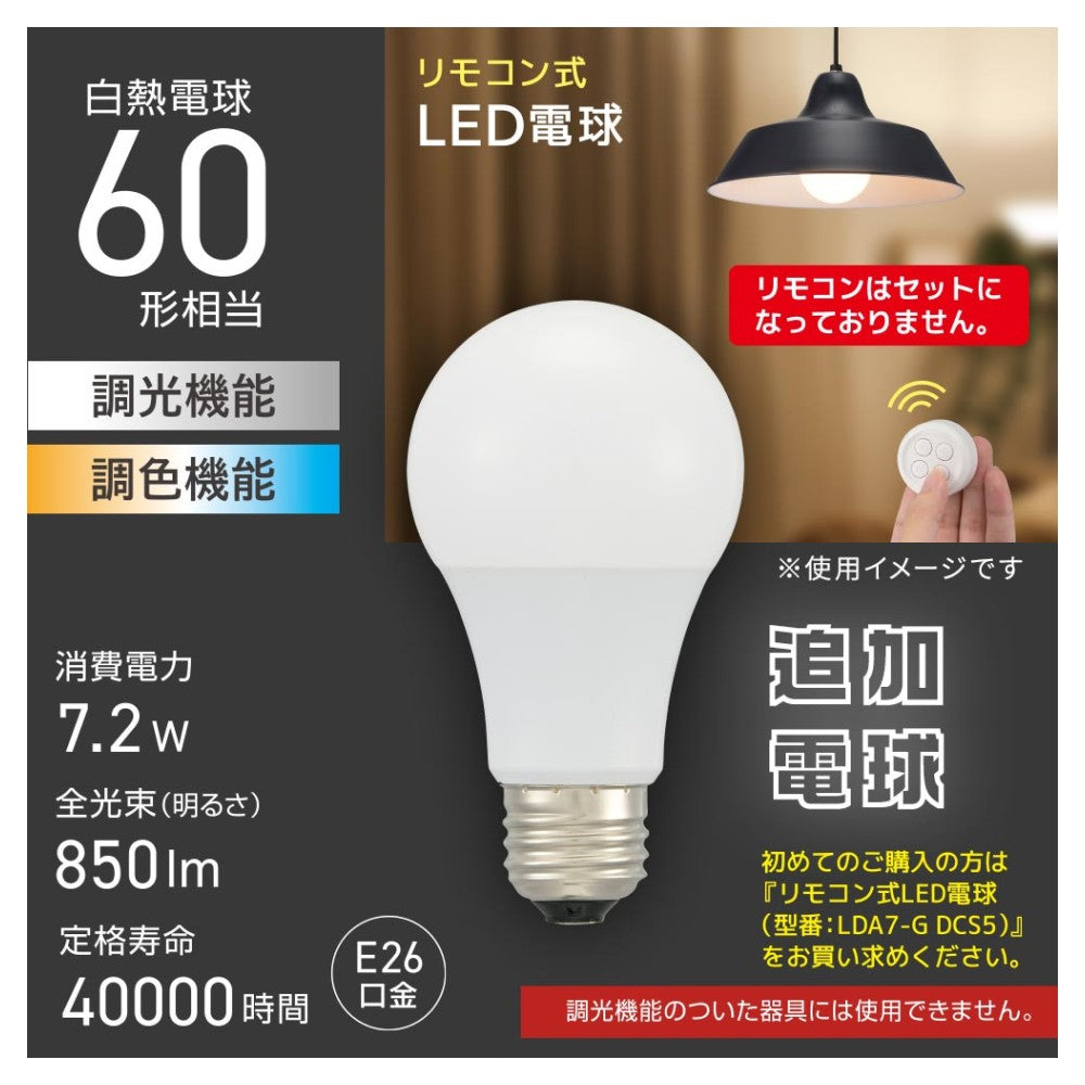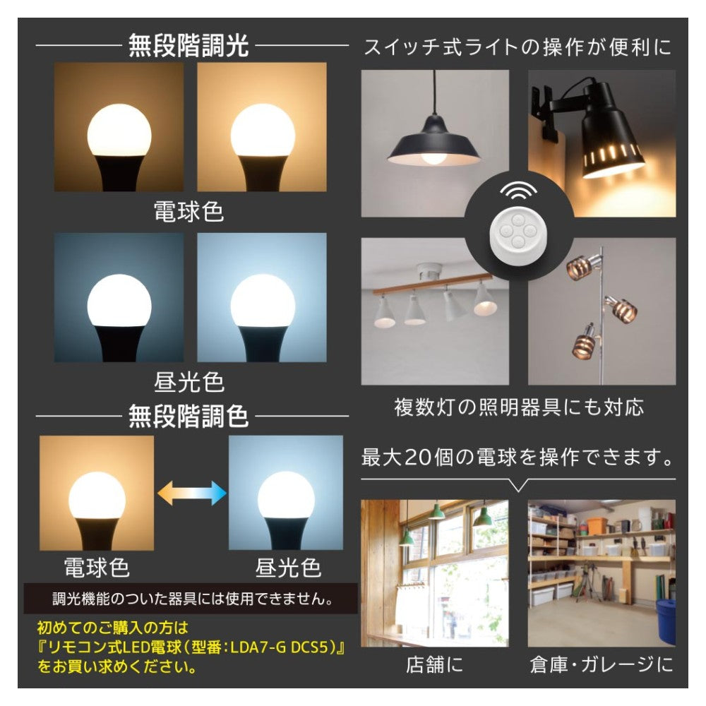 ※ リモコンはセットになっておりません。初めてのご購入の方は「リモコン式LED電球(型番:LDA7-G DCS5)」をお買い求めください。