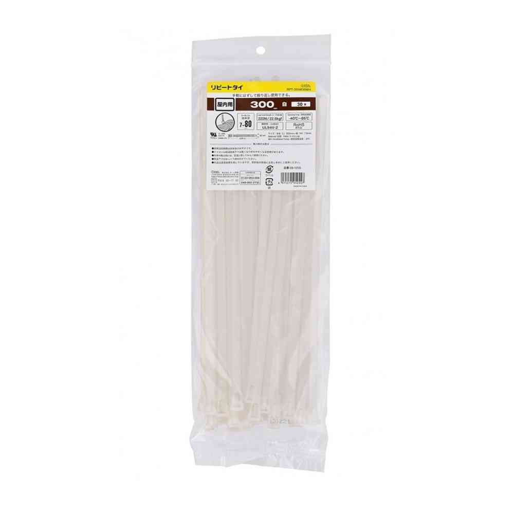 オーム電機 リピートタイ 屋内用 300mm RPT-300W30WH 30本入