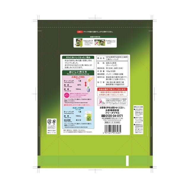 国産茶葉100% さらにおいしくなった!理由 宇治の抹茶と味の濃い深蒸し茶をブレンドしました。まろやかな口当たりと深い味わいがお楽しみいただけます。