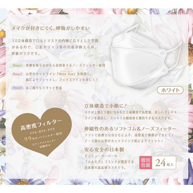 エルモア 肌ともマスク 3Dマスク 立体マスク 不織布マスク 3層構造 99%カットフィルター ふつうサイズ ホワイト 個別包装 個包装 日本製 国産