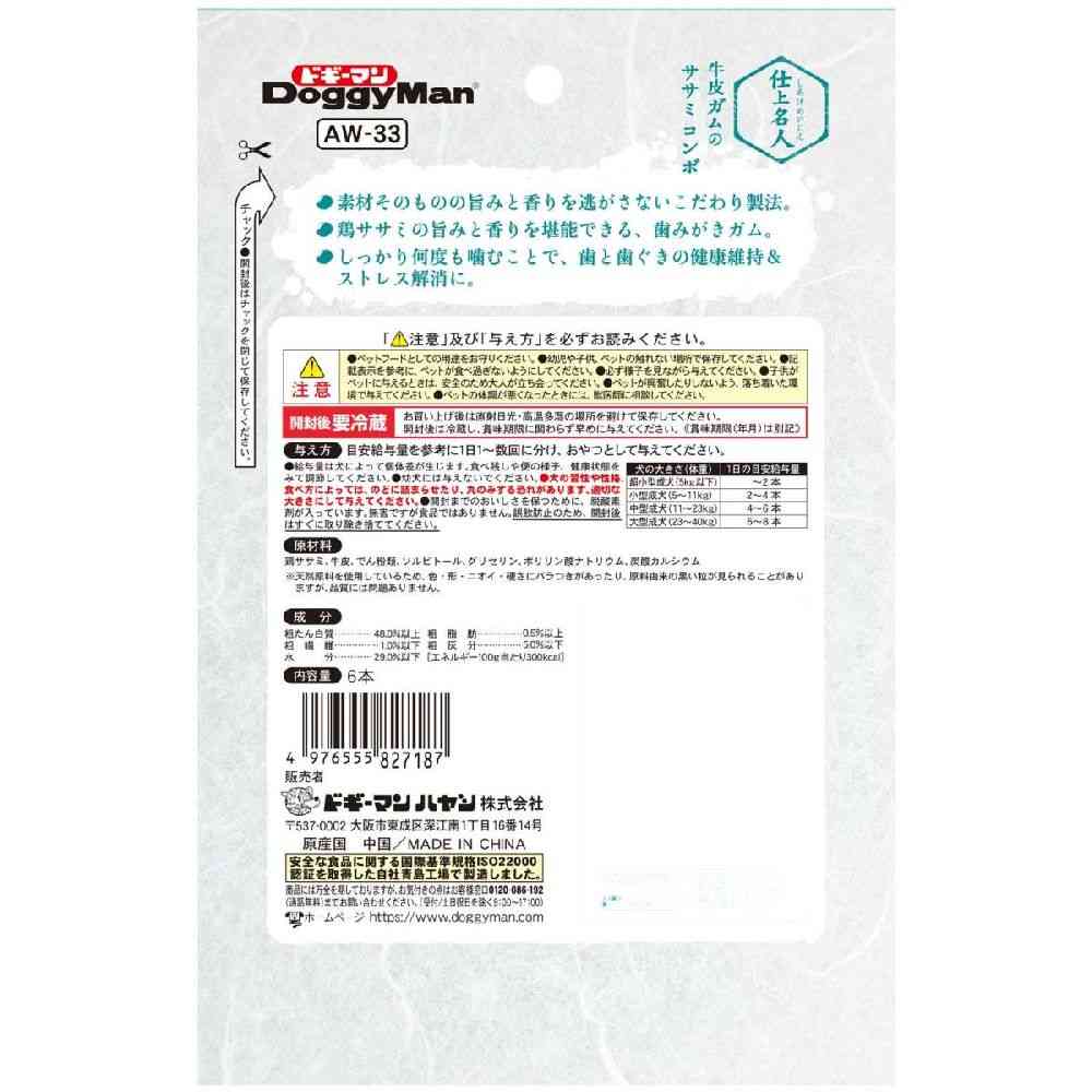 ドギーマン 仕上名人 牛皮ガムのササミコンボ 6本
