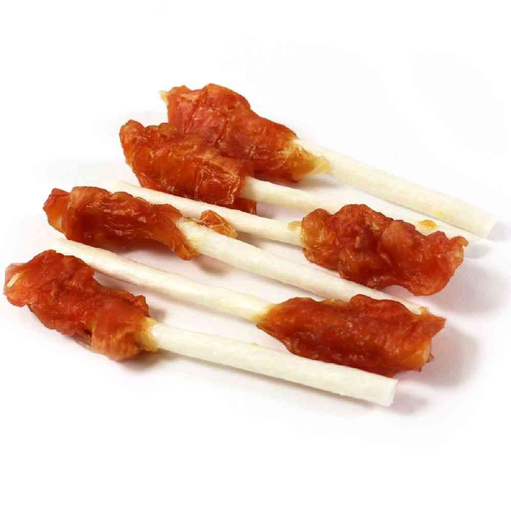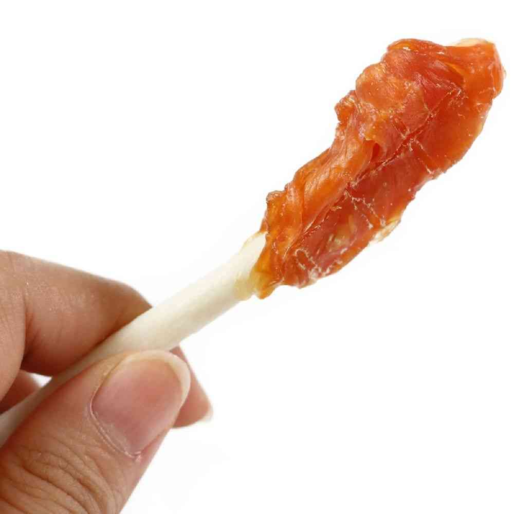 牛皮ガムの先端に、うまみあふれる鶏ささみをたっぷり巻きました。