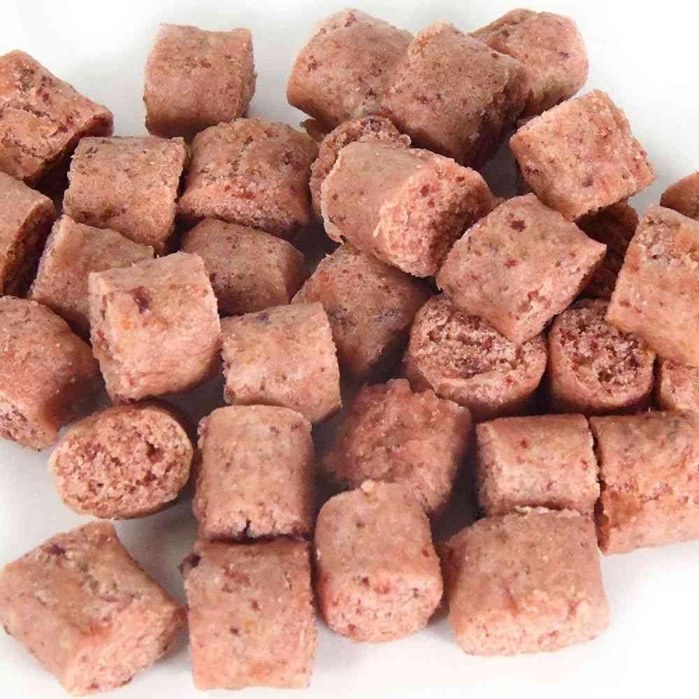 目安給与量を参考に1日1~数回に分け、おやつとして与えてください。 【1日の目安給与量】 ・幼犬 超小型成犬(5kg以下):~10個 ・小型成犬(5~11kg):10~20個 ・中型成犬(11~23kg):20~40個 ・大型成犬(23~40kg):40~60個