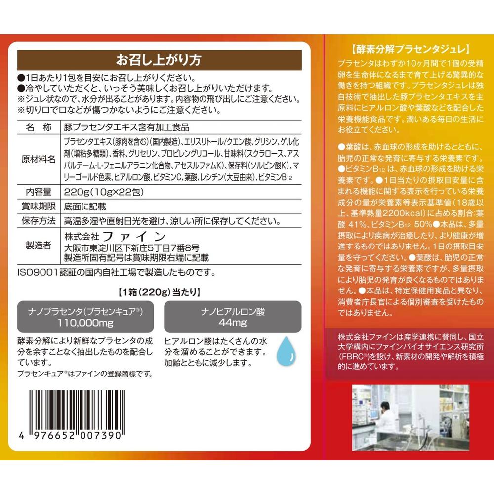 プラセンタエキスをしっかり摂れるジュレ、お手ごろ価格で22本分!1箱ナノプラセンタエキス110,000mg、ナノヒアルロン酸44mg。
