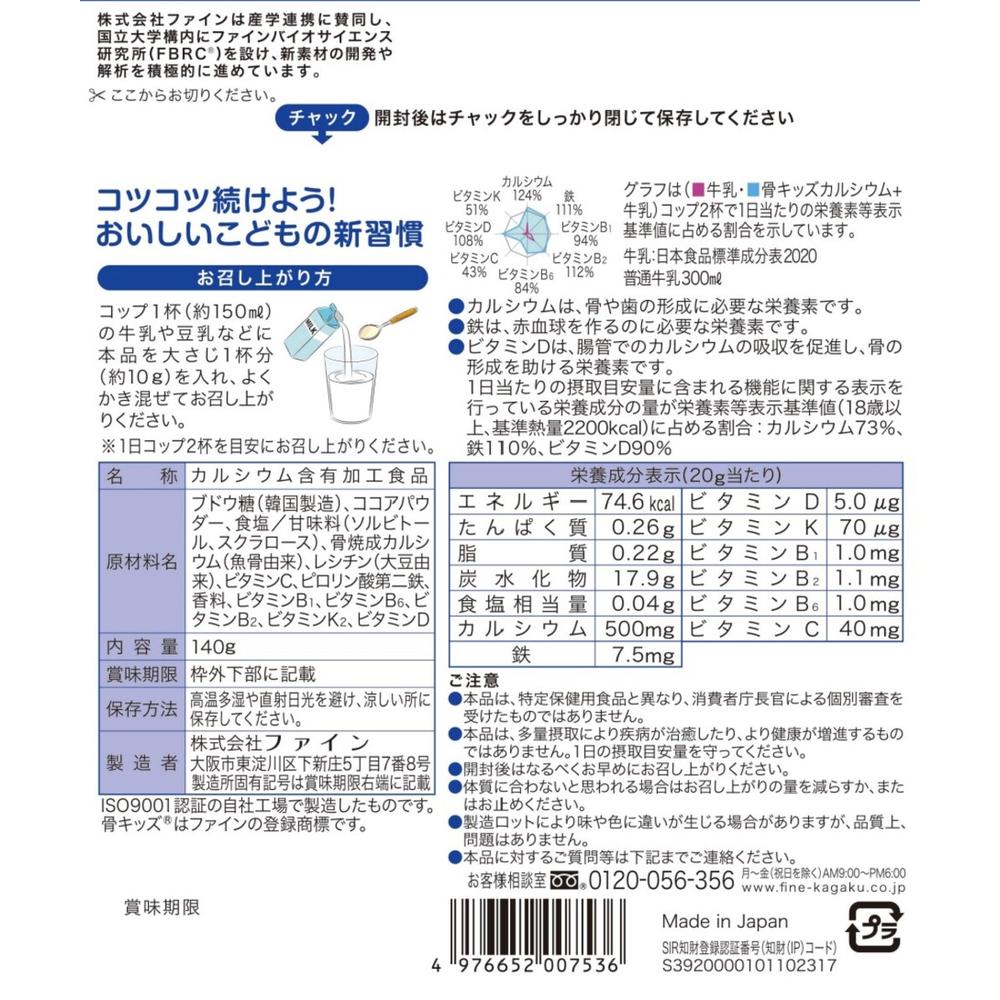 本品20gで骨形成には欠かせないカルシウム500mgを摂取できます。