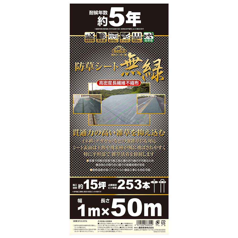 透水性、耐久性、柔軟性に優れた本格的な防草シートです。
