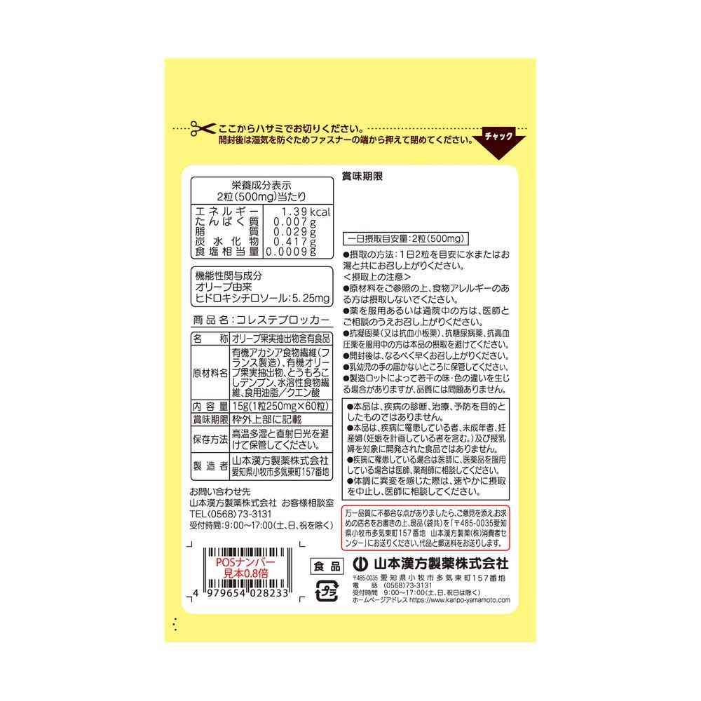 エネルギー:1.39kcal、たんぱく質:0.007g、脂質:0.029g、炭水化物:0.417g、食塩相当量:0.0009g、オリーブ由来ヒドロキシチロソール:5.25mg