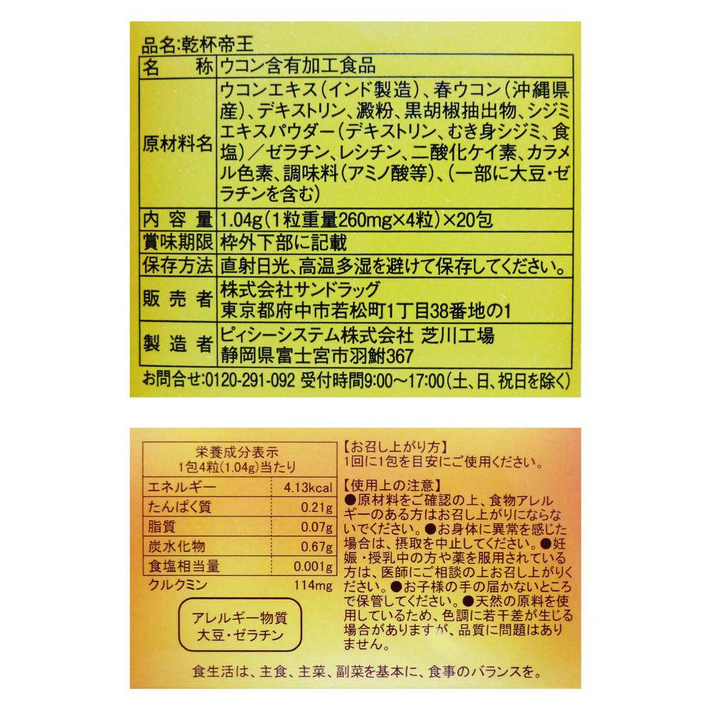 秋ウコン8,140mg/4粒、リポソーム型ウコン489mg/4粒、春ウコン163mg/4粒