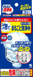 ●洗浄成分が強力に発泡し、排水口のストレーナーをまるごと泡で包み込みながら、ヌメリを落とします