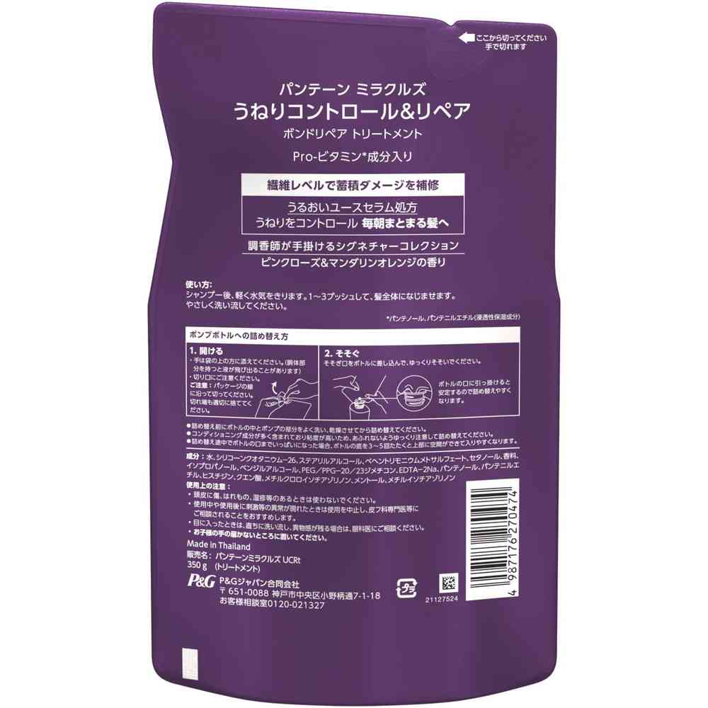 水、シリコーンクオタニウム‐26、ステアリルアルコール、ベヘントリモニウムメトサルフェート、セタノール、香料、イソプロパノール、ベンジルアルコール、PEG/PPG‐20/23ジメチコン、EDTA-2Na、パンテノール、パンテニルエチル、ヒスチジン、クエン酸、メチルクロロイソチアゾリノン、メントール、メチルイソチアゾリノン