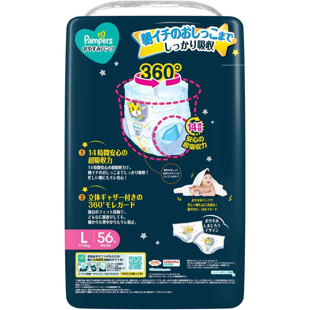 P&G パンパース おやすみパンツ ウルトラジャンボ 男女共用 L(9-14kg) 56枚