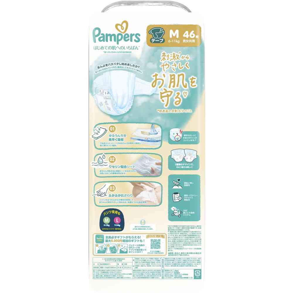 P&G パンパース はじめての肌へのいちばんテープ スーパージャンボ M(6-11kg) 46枚
