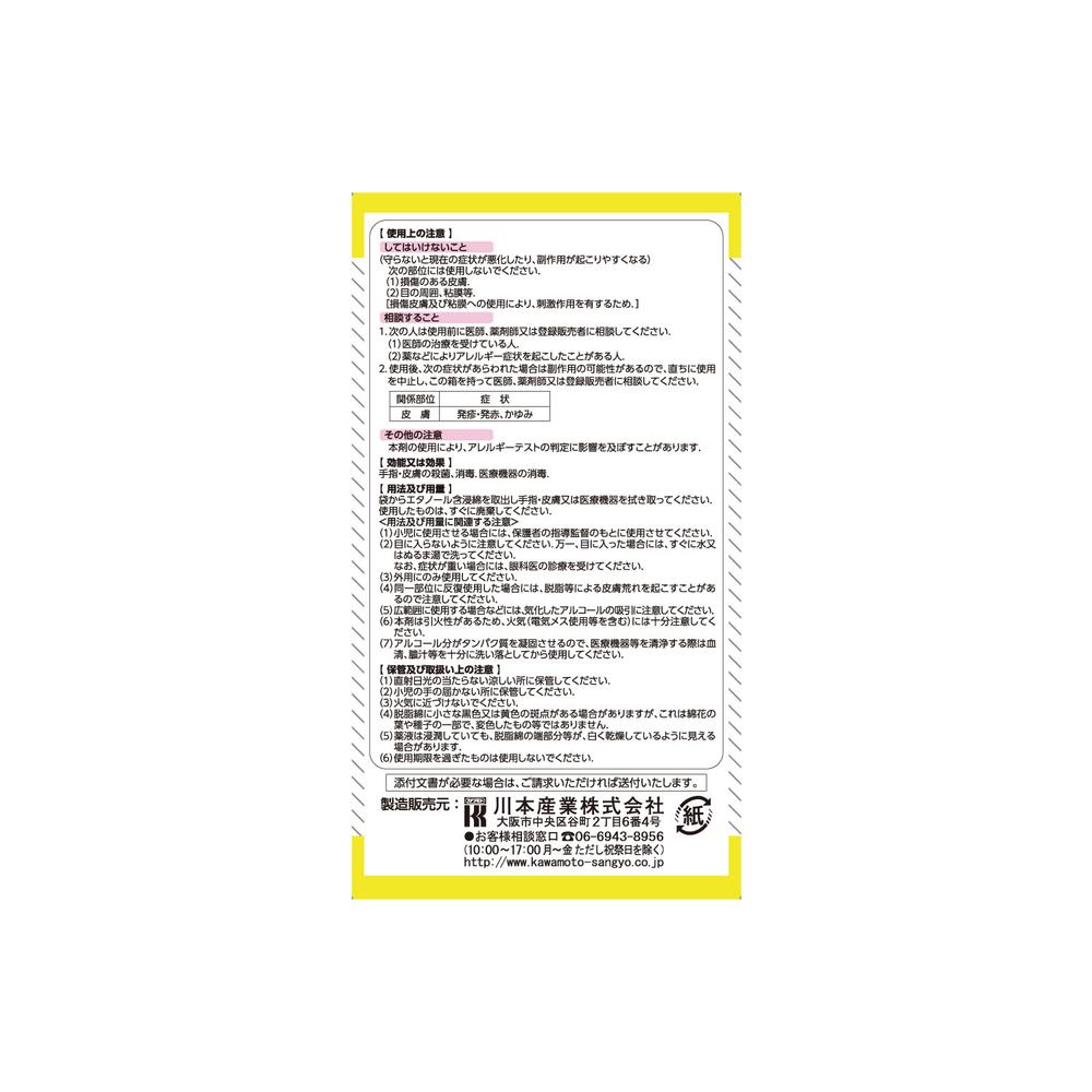 1枚ずつパックされていますのでアルコール濃度の低下、汚染防止に効果があり病院感染対策に有効です。