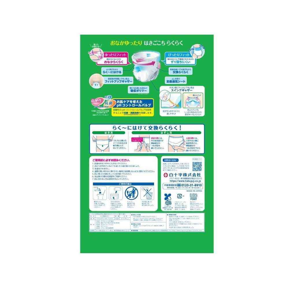 やさしく包むらくらく設計—おなかとお尻はゆったりさせ、モレにつながりやすい下腹部とウエスト部をしっかりフィットさせる構造を採用。