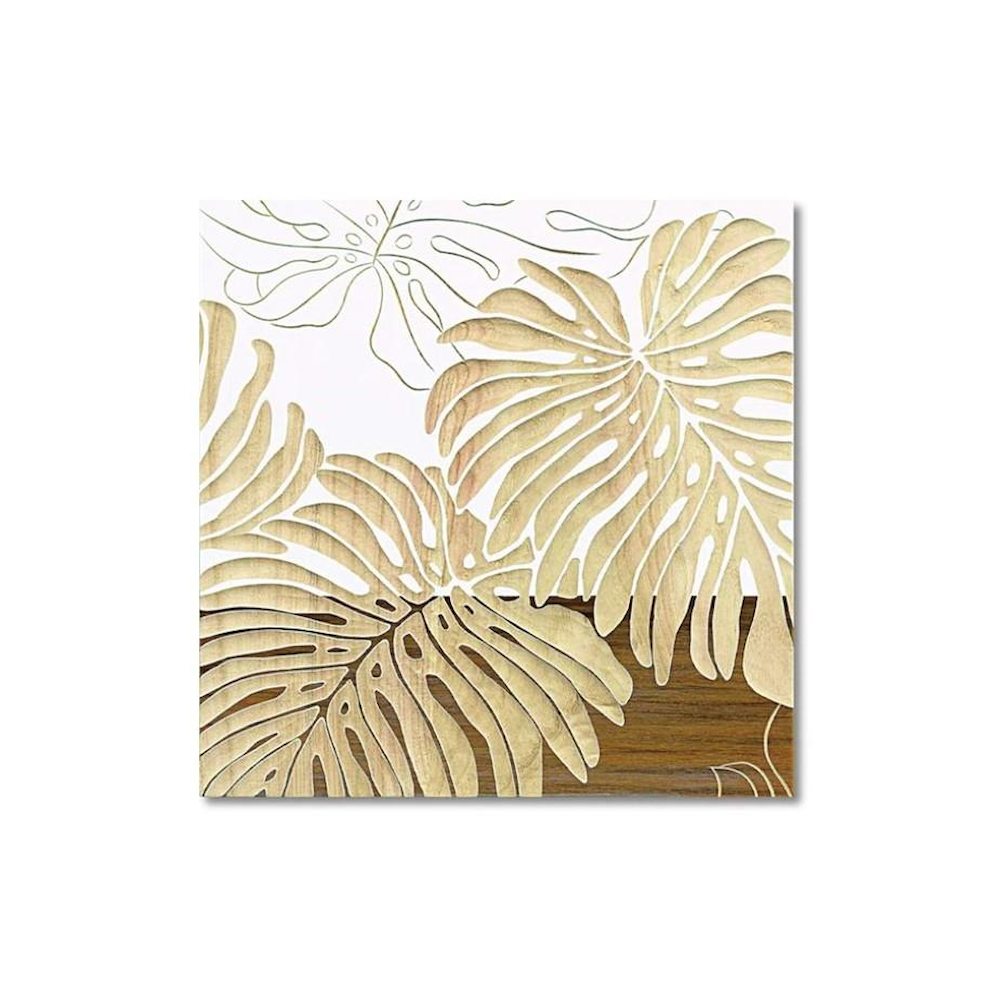 ネーチャーなモダンアート 天然の木にペイントを施し、熟練した職人がリーフや花、木等の柄を様々なサイズの彫刻刀を使って、1枚1枚彫っています。様々な木目が現れネーチャーなモダンアートです。