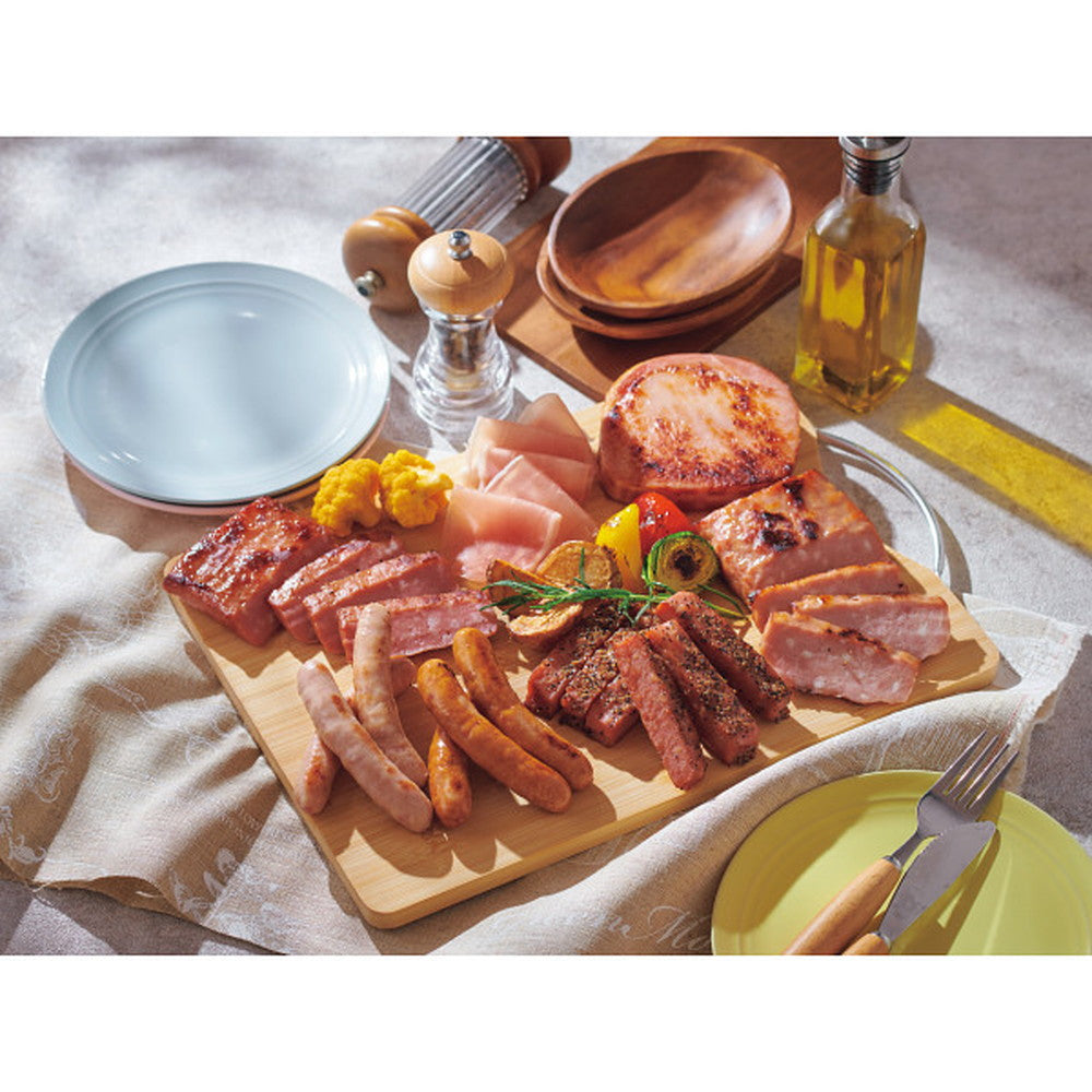 商品内容:●ロースハム160g、スモークボロニア105g、ペッパーボロニア105g、特撰あらびきウインナー66g、特撰ホワイトウインナー66g、ロース生ハム27g、焼豚140g