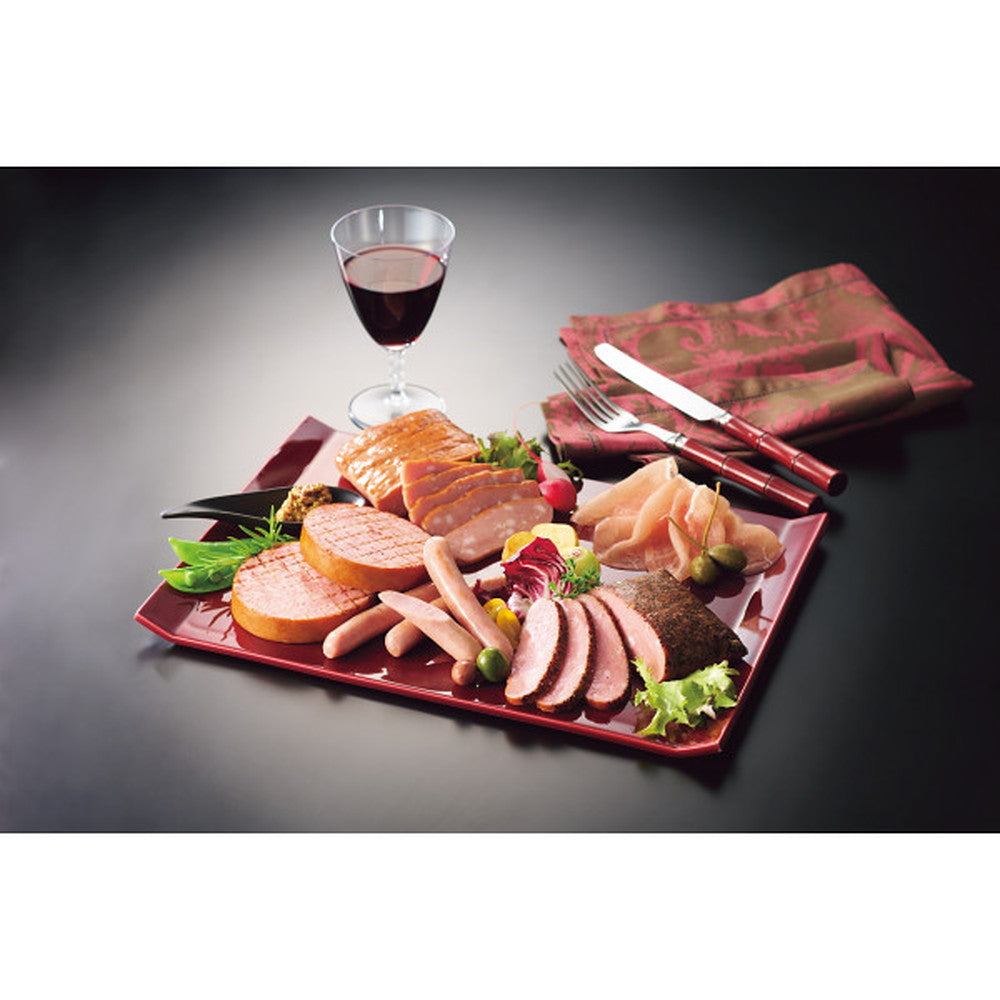 商品内容:●スモークローフ140g、焼豚120g、特級あらびきステーキ50g、生ハムロース32g、あらびきウインナー60g、絹びきウインナー60g