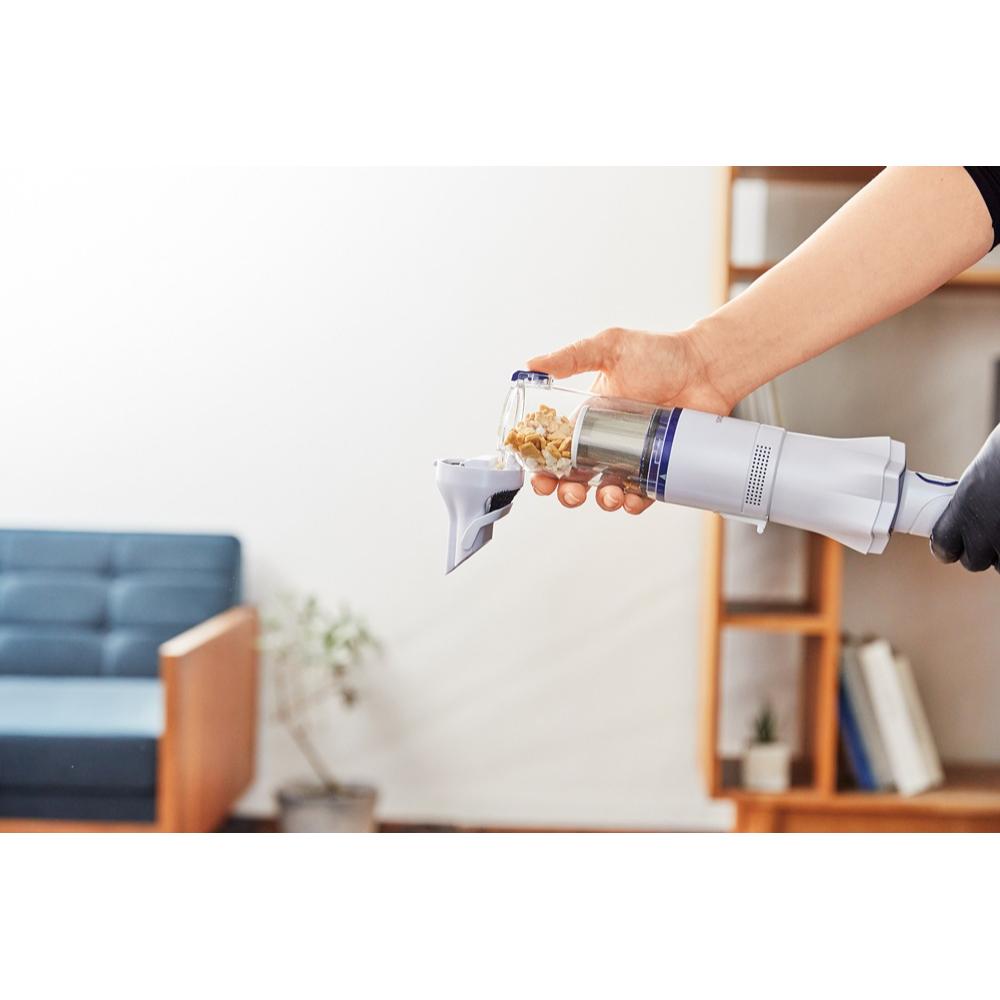 ■ワンタッチでゴミ捨て可能なダストカップ。ごみに触ることなく簡単に捨てれるので衛生的。丸洗いもできてキレイに保てる