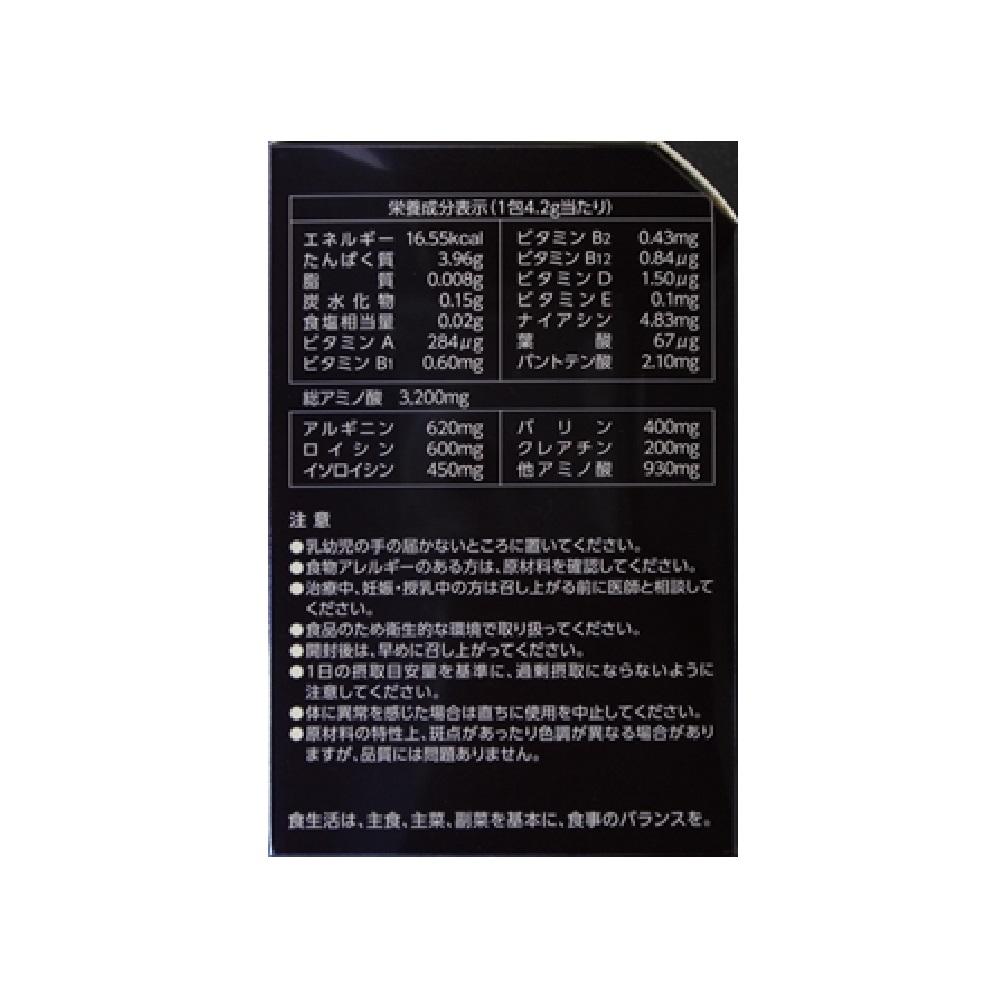 還元麦芽糖水飴、クレアチンモノハイドレート、ビタミンE、L‐グルタミン/L‐アルギニン、L‐ロイシン、L‐イソロイシン、L‐バリン、クエン酸、香料(レモン)、L‐リジン塩酸塩、L‐アスパラギン酸Na、L‐スレオニン、L‐ヒスチジン、L‐アラニン、甘味料(アスパルテーム:L‐フェニルアラニン化合物)、増粘剤(プルラン)、ピロリン酸第二鉄、卵殻カルシウム、ナイアシン、ビタミンA、パントテン酸Ca、ビタミンB12、ビタミンB1、ビタミンB2、ビタミンD、葉酸_x000D_