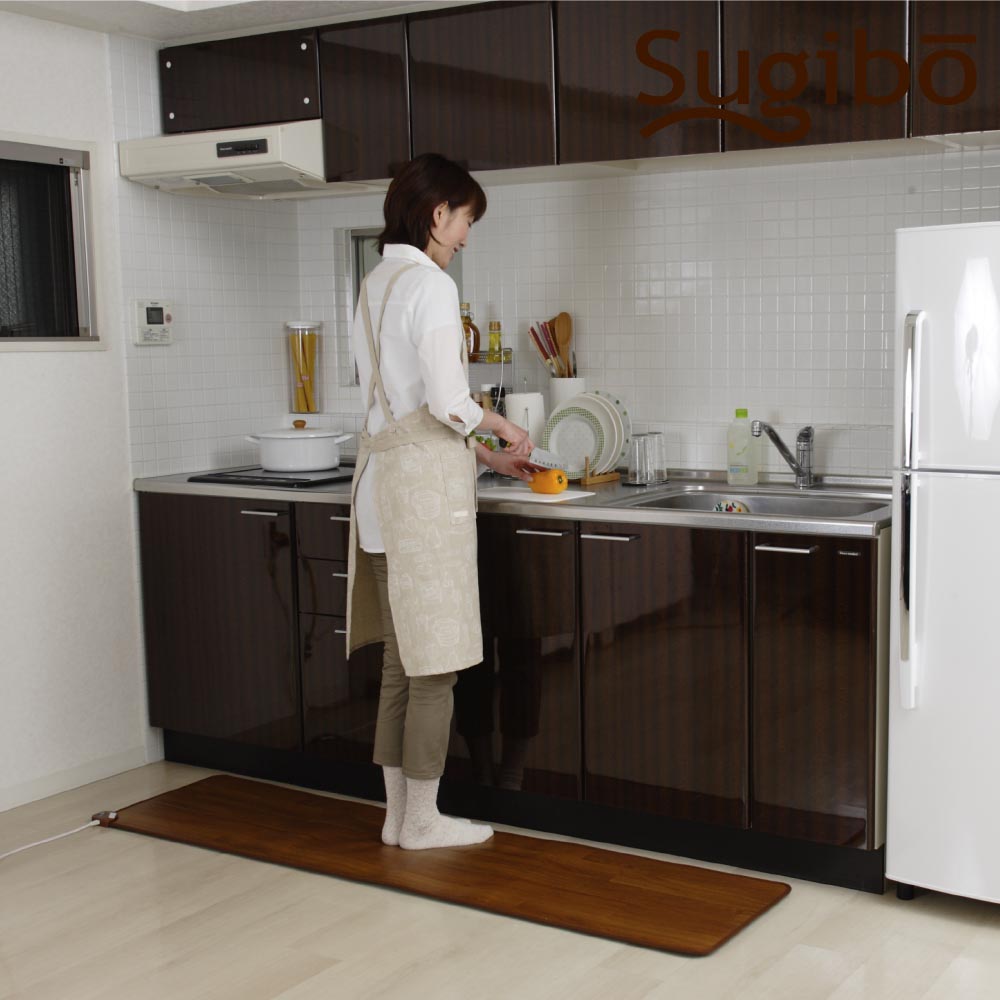 〇水仕事を快適に!キッチンの広さに合わせて選べるサイズと床に合わせて選べるカラーのフローリング調ホットマット。表面には抗菌・防カビ加工が施されており、防水素材だから汚れもサッとひと拭きお掃除も簡単、いつでも衛生的。裏面は、滑り止め付きで安心してご使用いただけます。●定格/交流100V-200W 50-60Hz共用 ●コード長/約1.9m ●表面温度/約45度 ●電気代(1時間あたり)/約3.4円(1kWh当たり31円で算出)●重量/約1.5kg ●保証期間/お買上げ日より1年