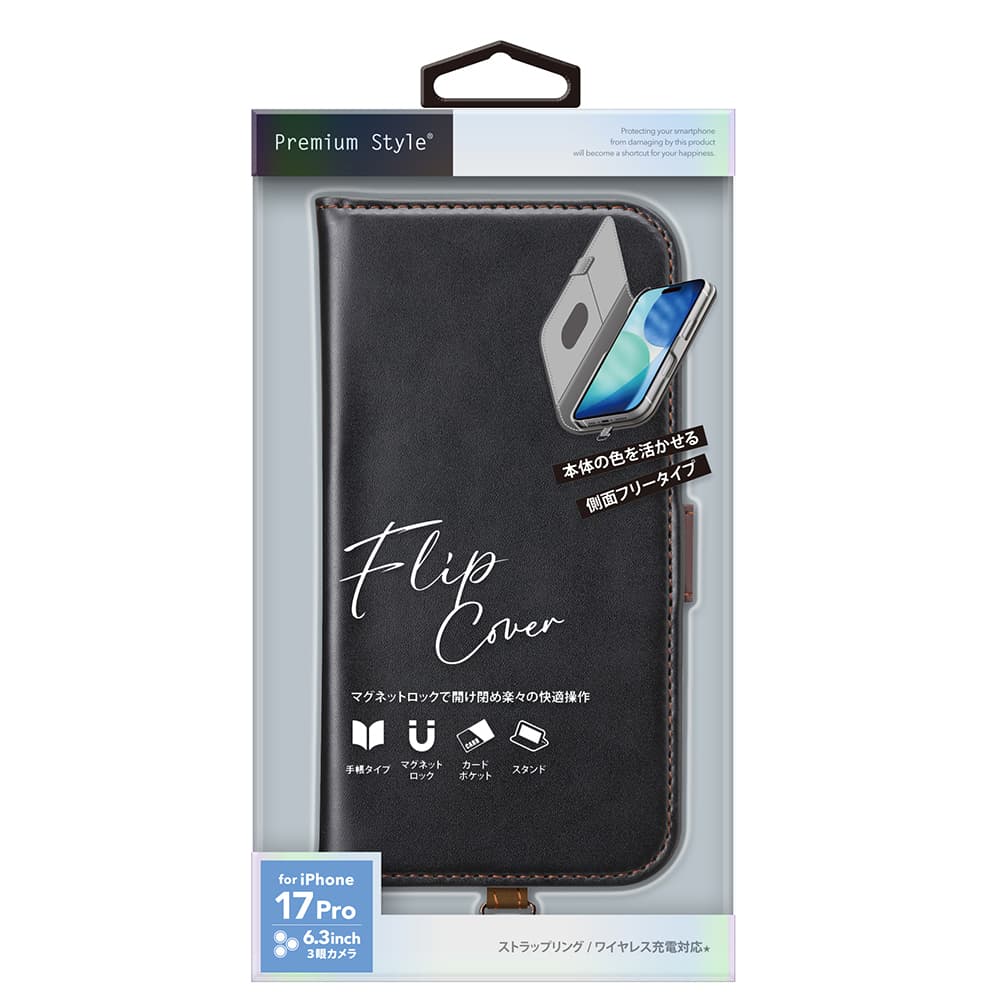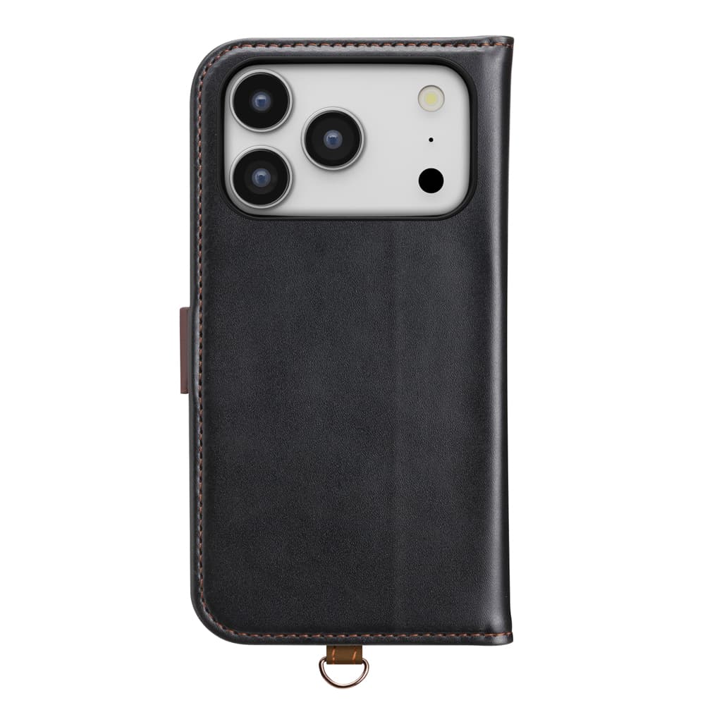 「PG-25BFP02BK」は、風合いの良い上質なPUレザー素材を使用したiPhone 17 Pro用 フリップカバーです。