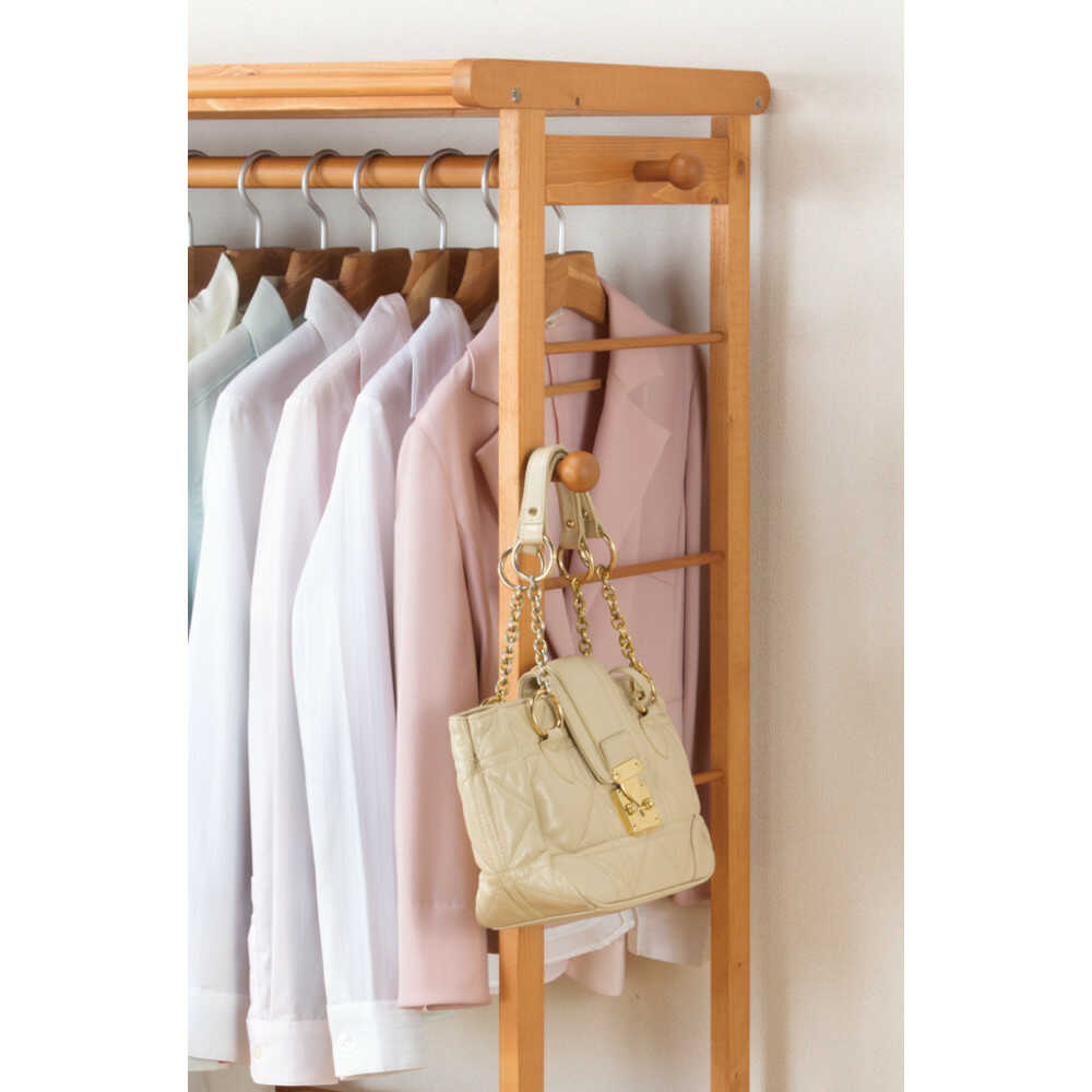 ワンピースなど丈の長い物も掛けられる天然木のカーテン付きハンガー。