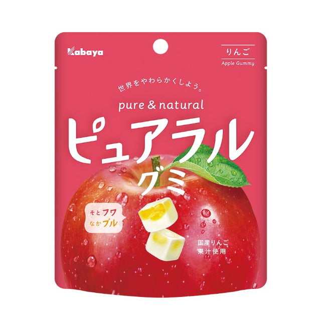 2つのグミを組み合わせることで、りんごの持つ味のコントラスト(甘味、酸味)を、再現している。国産りんご果汁使用。