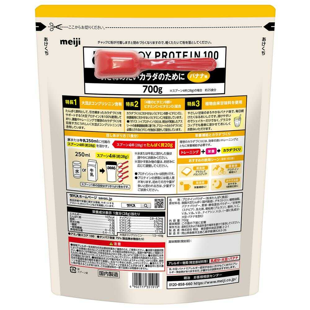 「ザバスソイプロテイン100」は、明治が実施したアスリートの食事調査結果に基づき、アスリートのカラダづくりに必要とされるビタミンを独自に設計して配合しています。