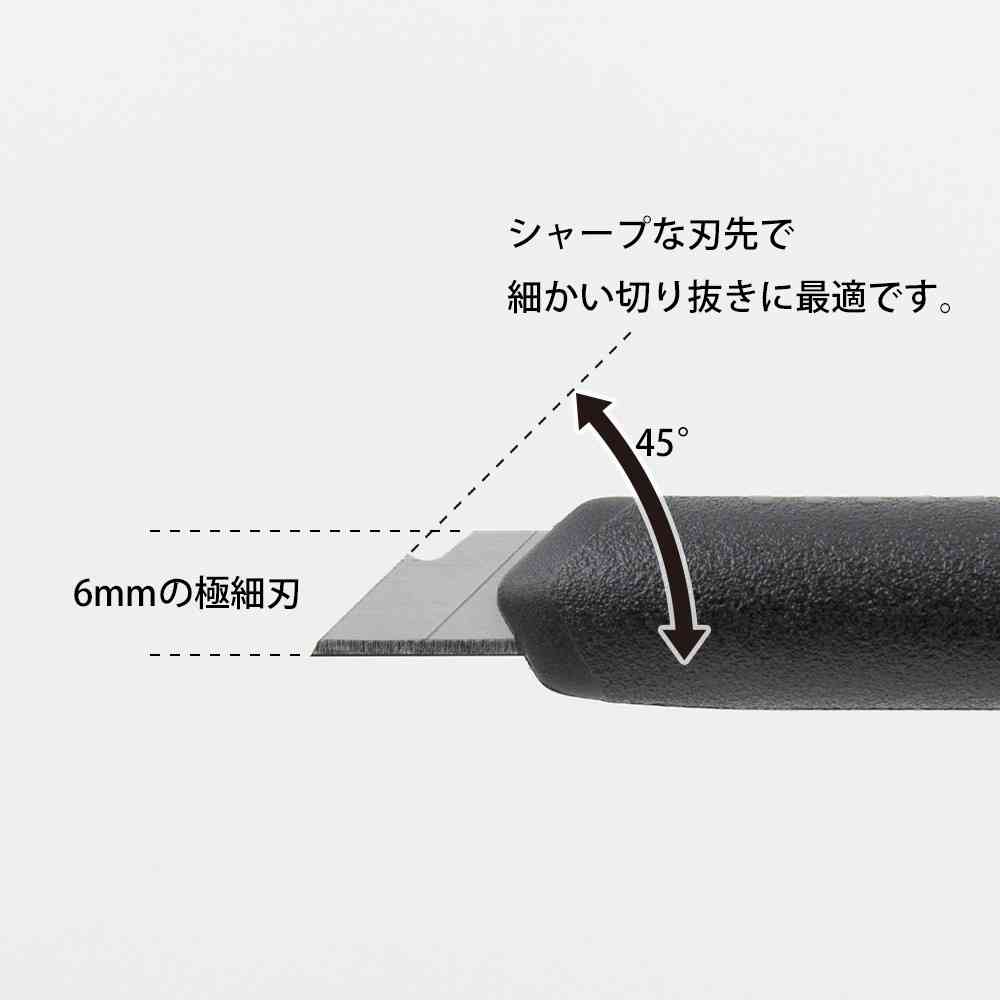 幅6mmの極細刃と、45度のシャープな刃先により細かい切り抜き作業に適しています。